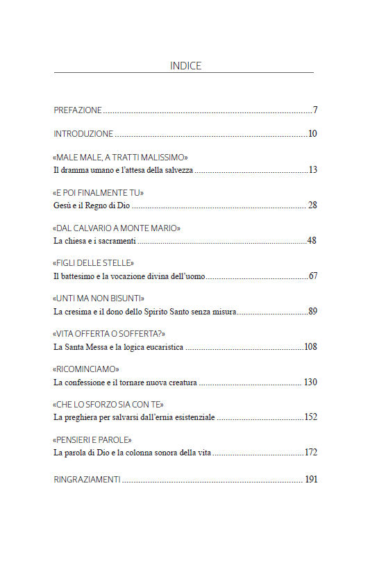 L’aveva capito anche Mengoni che ciò che conta è “L’essenziale”. Certo, sarebbe anche interessante discutere sul proto-Isaia e sulla storiografia ecclesiale della sinodalità, ma forse prima dovremmo spiegare all’uomo che lavora duramente sei giorni su sette perché la domenica dovrebbe alzarsi per venire a messa. Ecco, in questo libro non troverai alta teologia, ma una presentazione basica – “da manuale” - di come incontrare Colui che si è definito “Via, verità e vita”; e, soprattutto, di quanto il Signore Gesù possa salvare la tua storia e quella del mondo.