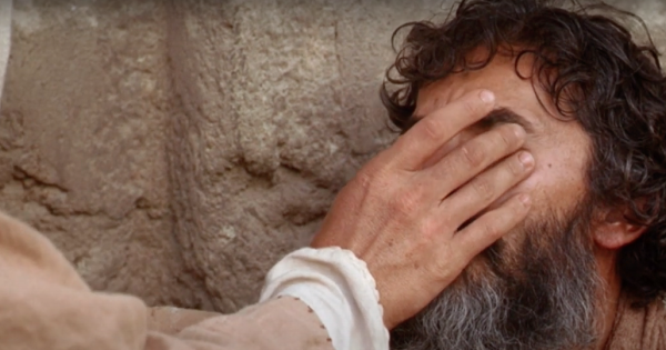 L’episodio, il cui testo che viene annualmente viene letto nella liturgia pressoché al termine della Quaresima, è noto: «Passando vide un uomo cieco dalla nascita e i suoi discepoli lo interrogarono: «Rabbì, chi ha peccato, lui o i suoi genitori, perché egli nascesse cieco?». Rispose Gesù: «Né lui ha peccato né i suoi genitori, ma è così perché si manifestassero in lui le opere di Dio. Dobbiamo compiere le opere di colui che mi ha mandato finché è giorno; poi viene la notte, quando nessuno può più operare. Finché sono nel mondo, sono la luce del mondo». Detto questo sputò per terra, fece del fango con la saliva, spalmò il fango sugli occhi del cieco e gli disse: «Va’ a lavarti nella piscina di Sìloe (che significa “inviato”)». Quegli andò, si lavò e tornò che ci vedeva (Gv 9,1-7).