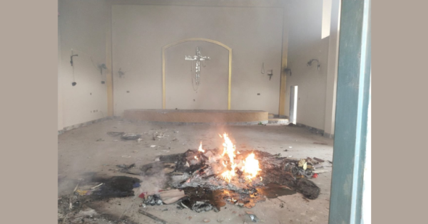 Lozano ha aggiunto che «l’arrivo dei vigili del fuoco e della polizia non ha dissuaso gli aggressori, che hanno continuato a distruggere proprietà, gettando mobili per le strade e dando fuoco a chiese e case, mentre chiedevano l’omicidio dei presunti blasfemi». «Nonostante la diffusa distruzione e lo shock causati dall’incidente», ha proseguito Lozano che «attualmente non c’è alcuna indicazione di vittime tra i membri della comunità cristiana, che sembrano essere stati in grado di fuggire dalla scena perché sono stati avvertiti in anticipo». (Fonte foto: Twitter)The church has been torched. #Jaranwala #Pakistan #blasphemy pic.twitter.com/TZ6HkHSWhy