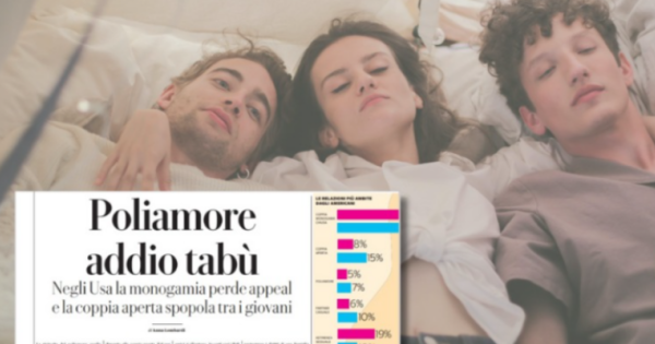E già perché nell’articolone datato uscito ieri l’incipit non lascia spazio a dubbi: il poliamore è una scelta non solo buona, ma - udite udite - addirittura etica perché, quelle che un tempo si chiamavano classicamente “corna” o, quando erano più di una, “cesto di corna” (ci si perdoni il francesismo), ora sono in realtà simbolo di “progresso” e addirittura di “trasparenza dei legami”. Anzi, per la precisione, per Repubblica, il poliamore è «[…] quella forma di relazione romantica o meramente sessuale in cui le persone coinvolte costruiscono legami sentimentali o intimi a lungo termine, con più partner contemporaneamente, alla luce del sole e col consenso di tutti». Manca solo una pacca sulla spalla!
