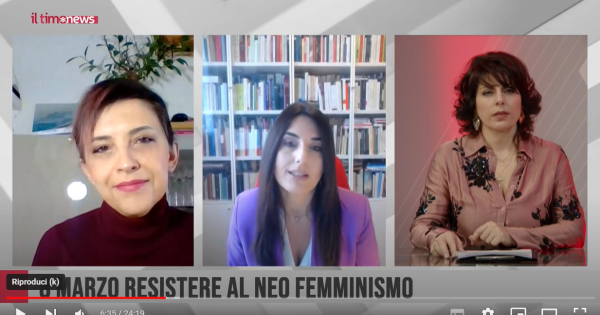 In collegamento con Maria Gabriella Ricotta ci sono Raffaella Frullone, giornalista autrice del libro «PresidentA anche no», e Maria Rachele Ruiu di Provita & Famiglia