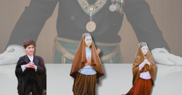 Una storia nella storia. La si potrebbe chiamare così quella avvenuta 107 anni fa, quando i tre pastorelli di Fatima furono vittime di un vero e proprio sequestro massonico. Non è una esagerazione: andò proprio così. Era infatti il 13 agosto 1917 quando i piccoli Lucia Santos, Francesco e Giacinta Marto non poterono vedere la Vergine di Fatima perché ostacolati da Arturo de Oliveira Santos, sindaco di Vilanova de Ourem che, pur cattolico di provenienza, aveva abbandonato la sua fede, di fatto, per servire meglio la sua loggia massonica. Per capire le manovre di questo pregiudicato sindaco fare un passo indietro e ricordare che le apparizioni della Madonna di Fatima iniziarono il 13 maggio 1917. L’inizialmente misteriosa Signora disse ai tre pastorelli che veniva dal Cielo, che era venuta a chiedere di tornare ogni 13 del mese per i sei mesi successivi, e chiese loro di offrire ogni giorno un Rosario, e di offrire la loro sofferenza per la conversione dei peccatori. Lucia, Francesco e Giacinta obbedirono: tornarono il 13 giugno, con 14 compagne.