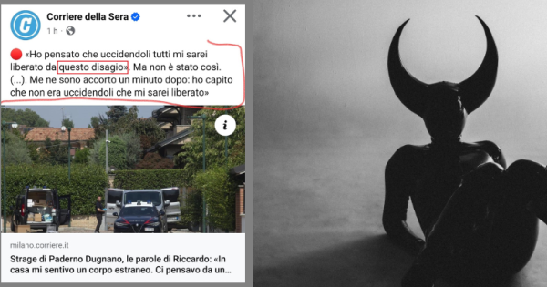 Satana non esiste vero? É sparito dalla predicazione, non se ne parla, si vira, con il pensiero mondano, verso un più generico male. E poi malessere, pulsioni omicide, raptus, follia, disagio, tutti termini mutuati da psicologia e psichiatria, magari pure azzeccati, ma che costituiscono, da decenni, la via mondana e pagana per spiegare il male senza riuscirci. E il tentativo di molti, nella Chiesa, di aggiornare un po’ tutto, con il risultato di fare del Signore Gesù un disoccupato di bella e buona presenza. Senza satana e il combattimento con lui, che senso ha Gesù, il Salvatore? Perché il male non é una patologia, il male è satana, e dimenticarlo, nasconderlo o rifiutarlo rende suoi complici. Pure nei confronti dei bambini e degli adolescenti, che possono esserne sedotti e arrivare a sterminare la propria famiglia. Solo se chiamiamo per nome la causa, il padre, l'origine del male potremo averne ragione in virtù di chi, sulla Croce, lo ha già sconfitto. O Cristo o le chiacchiere inutili. (Fonte foto: Corriere.it/Pexels.com) ABBONATI ALLA RIVISTA!