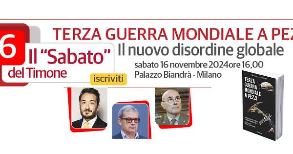 Cominciamo sabato 16 novembre alle ore 16 con “Terza guerra mondiale a pezzi. Il nuovo disordine globale”, insieme al Generale Marco Bertolini, il reporter di guerra Fausto Biloslavo e il giornalista esperto di geopolitica vicecaposervizio de ilGiornale.it, Matteo Carnieletto.